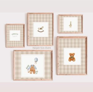 Bej, krem, açık gri ve pudra tonları modern bebek odası dekorasyonunun vazgeçilmezi. Minimal çizgilerle tasarlanan posterler hem sade hem zarif bir görünüm sunar.