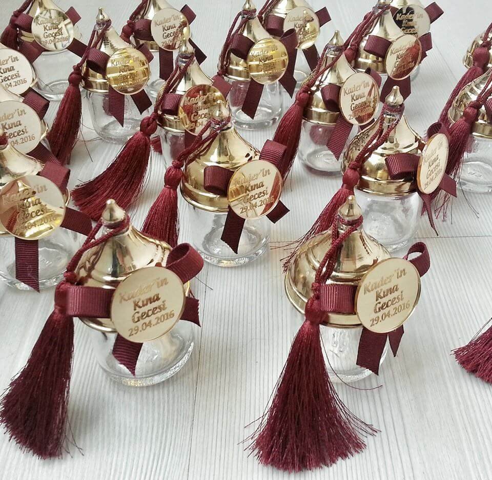 - Hediyelik eşya olarak ayna, isim yazılı yelpaze, gümüş şeker kaşıkları, butik kurabiye veya bunlar gibi şeyler tercih edebilirsiniz.
