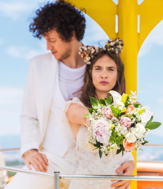 Müge Boz’un gelinliği, aksesuarları, Caner Erdeniz’in damatlığı düğün fotoğraf konseptine gerçekten harika uyum sağlamış.